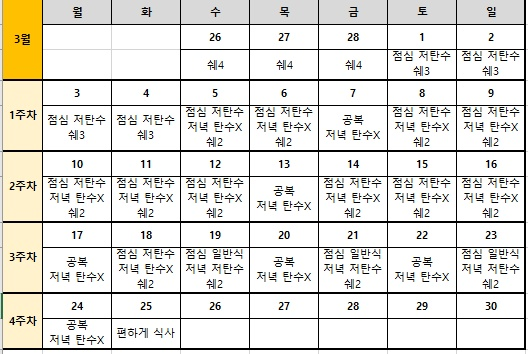 따라서 1주차 식단은 탄수화물을 최소화하고, 단백질과 건강한 지방을 충분히 섭취하는 데 집중해야 합니다.